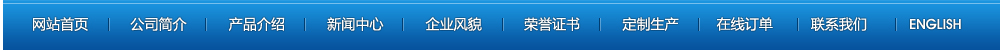 網(wǎng)站首頁 | 公司簡介 | 產品介紹 | 新聞中心 | 企業(yè)風貌 | 榮譽證書 | 定制產品 | 在線訂單 | 聯(lián)系我們 | ENGLISH 【后臺管理】